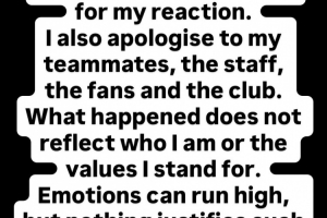 “發(fā)生的事情并不能反映我的為人,也不能反映我所代表的價值觀。情緒激動在所難免,但沒有什么理由可以為這種行為辯護,我保證這種事不會再發(fā)生了。”