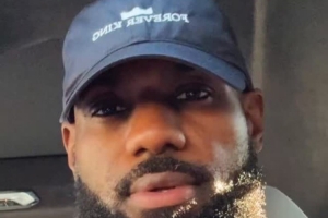 詹姆斯曬出了他在車內(nèi)的自拍,他頭戴一頂中國(guó)行期間發(fā)布的“Forever King(永遠(yuǎn)的王)”主題帽子,并配文道:“????”