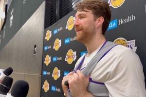 體育資訊11月26日訊 今日湖人新簽的雙向合同球員德魯·蒂米在球隊(duì)訓(xùn)練接受接受了媒體采訪。