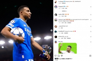 本場比賽姆巴佩上演大四喜,賽后他也在社媒曬出拿走比賽用球和全場最佳獎(jiǎng)杯的照片,配文寫道:“永遠(yuǎn)團(tuán)結(jié)一致,皇馬加油!”