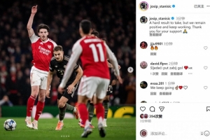 斯坦尼西奇社媒曬出比賽照片,配文:“這是一個(gè)難以接受的結(jié)果,但我們依然保持積極的態(tài)度,繼續(xù)努力。感謝大家的支持?!?/p>