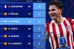 體育資訊11月27日訊 在本輪歐冠馬競2-1擊敗國米的比賽中,阿爾瓦雷斯破門,打進(jìn)馬競生涯歐冠第10球。以下為馬競隊(duì)史歐冠進(jìn)球榜: