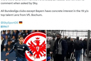 本周四,倫茨的經(jīng)紀(jì)人馬克拉姆·納賽爾出現(xiàn)在法蘭克福,但是否與法蘭克福進(jìn)行了會(huì)談尚不清楚,因?yàn)榧{賽爾在接受天空體育采訪時(shí)拒絕發(fā)表評(píng)論。除了拜仁之外,所有德甲俱樂部都對(duì)這位來自波鴻的年輕天才表示了濃厚的興趣。