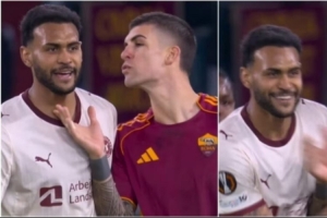 體育資訊11月28日訊 據(jù)《羅馬體育報(bào)》報(bào)道,羅馬后衛(wèi)曼奇尼在本輪歐聯(lián)杯比賽中用飛吻挑釁對手。