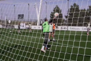 皇馬正在備戰(zhàn)這場比賽,瓊阿梅尼在訓練中側(cè)身勾射破門,技驚四座,隊友紛紛驚呼。