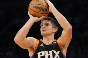 太陽(yáng)球員阿倫本場(chǎng)比賽先發(fā)出場(chǎng)表現(xiàn)非常全面,不僅三分線外手感穩(wěn)定,防守端也依舊水準(zhǔn)在線。