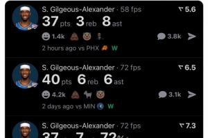 賽后美媒Real Sports曬出了亞歷山大近三戰(zhàn)數(shù)據(jù),寫道:“SGA應(yīng)進(jìn)入歷史級別得手的討論?!?/p>