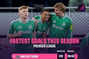體育資訊11月30日訊 紐卡在本輪英超對陣埃弗頓,佳夫為客隊閃擊建功。數(shù)據(jù)統(tǒng)計顯示,他也打破了福登的本賽季英超最快進球紀錄。