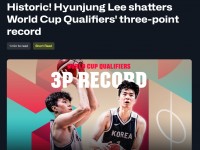 日前,李賢重在對陣中國男籃的比賽中砍下33分,帶領(lǐng)球隊在中國隊的主場贏得世預(yù)賽第1場勝利。全場比賽他投中9記三分球,打破了世界杯資格賽階段單場三分球最高紀錄,成為歷史第1人。