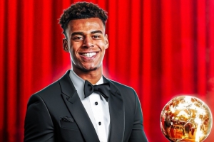 體育資訊12月2日訊 巴黎邊鋒杜埃領(lǐng)取2025年歐洲金童獎,俱樂部社媒曬海報祝賀。