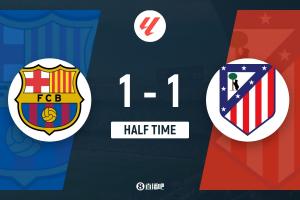 半場結(jié)束,巴薩暫1-1馬競。
