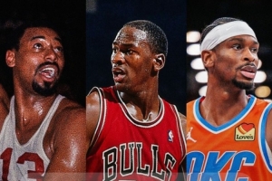 而在NBA歷史上,此前只有兩位球員在一個(gè)賽季中做到過30+得分場次占比80%及以上,他們是張伯倫(4次)、喬丹(86-87賽季)。