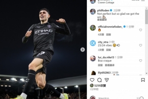 福登社媒曬出慶祝進(jìn)球的照片,并寫道:“并不完美,但很高興我們能取得勝利。”