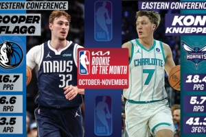 體育資訊12月3日訊 今日NBA官方公布了10-11月東西部月最佳新秀,狀元弗拉格與黃蜂4號秀克尼佩爾分別當(dāng)選。
