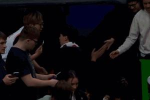 GIF-楊瀚森與球迷擊掌示意