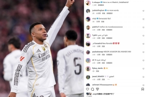 本場比賽姆巴佩2射1傳,賽后他也在社媒曬出本場慶祝進(jìn)球的照片,配文寫道:“這就是我的皇馬。加油,馬德里!”