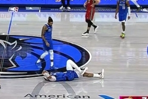 GIF-加福德補籃過程中受傷,倒地緩了好一會兒走回更衣室