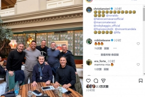 體育資訊12月5日訊 意大利足壇名宿維耶里更新社媒動態(tài),曬出與大羅、巴喬等人的合照。