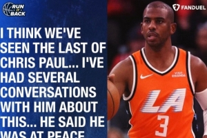 前NBA球員路威在《Run It Back》節(jié)目中談到此事,他說:“我認(rèn)為我們已經(jīng)看到了克里斯·保羅的最后一戰(zhàn)……我和他談過幾次關(guān)于這個(gè)問題,無論是視頻還是打字聊天,他說他已經(jīng)心平氣和了。”