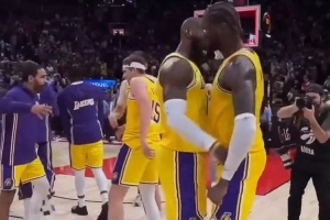 GIF-八村塁絕殺后詹姆斯和湖人隊員們瘋狂撞胸慶祝