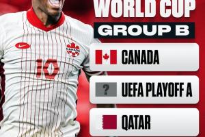 世界杯B組為:加拿大、歐洲區(qū)附加賽球隊(duì)A、卡塔爾、瑞士