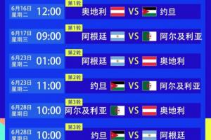 第3輪,約旦vs阿根廷,6月28日星期日10:00,達(dá)拉斯