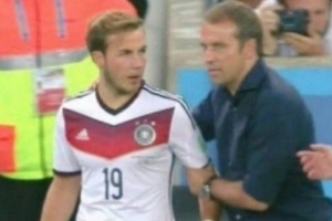 在2014年世界杯,弗里克擔(dān)任德國國家隊助教,而格策是德國國家隊的球員。2014年7月13日的世界杯決賽,德國對陣阿根廷,比賽第88分鐘,比分還是0-0平,德國主帥勒夫和助教弗里克討論之后,決定用格策換下中鋒克洛澤,并讓格策踢偽9號中鋒。