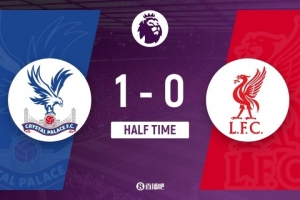 傷停補(bǔ)時(shí)10分鐘。上半場(chǎng)比賽結(jié)束,水晶宮1-0利物浦。