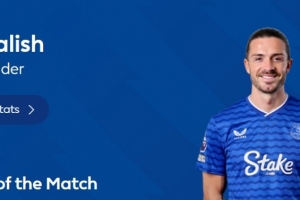 本場(chǎng)比賽格拉利什在93分鐘打進(jìn)絕殺,賽后他也當(dāng)選英超官方球迷票選全場(chǎng)最佳球員。