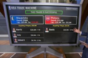 ESPN薪資專家Bobby Marks據(jù)此報(bào)道進(jìn)行模擬交易,濃眉奔赴活塞,獨(dú)行俠得到托拜亞斯·哈里斯+艾維+霍蘭三將。