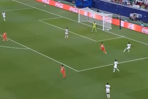 蘇丹中場(chǎng)阿馬爾·泰弗在己方底線附近過人,隨后詭異地“吊射”自家大門,門將勉強(qiáng)將球一撲,球落到對(duì)手腳下,然而巴林前鋒阿里·馬丹面對(duì)半個(gè)空門卻將球打偏,婉拒大禮。