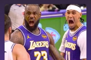 賽后,海斯在INS轉(zhuǎn)發(fā)了詹姆斯扣籃后,自己和他怒吼的同框照。