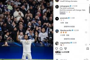 本場比賽羅德里戈率先破門,打破個(gè)人連續(xù)32場進(jìn)球荒,他在社媒曬出本場照片,配文寫道:“還要繼續(xù)努力,我們會改變現(xiàn)狀,Hala Madrid! ????”