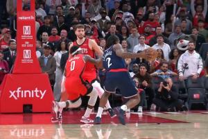 GIF-萊昂納德對抗頂飛霍勒迪被吹進(jìn)攻犯規(guī)!