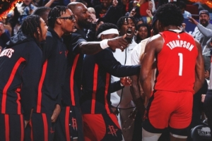 賽后火箭官方贏球海報(bào)封面人物給到了阿門(mén)·湯普森,為其末節(jié)最后時(shí)刻補(bǔ)籃打進(jìn)后的慶祝畫(huà)面。