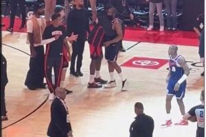賽后,哈登和火箭球員教練擁抱,其中和卡佩拉擁抱的時間最久。