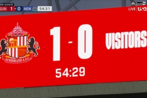 可以看到在桑德蘭1-0領先紐卡的比分牌上,既沒有后者的隊名也沒有隊徽,僅僅以客隊來標注。