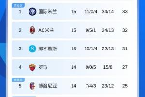 目前積分榜上,國米33分領(lǐng)跑,米蘭32分第二,那不勒斯31分第三。