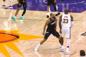 比賽最后時刻,狄龍飚中三分后不滿被詹姆斯撲倒,起身與詹姆斯對撞吃T,累積兩T被驅(qū)逐。