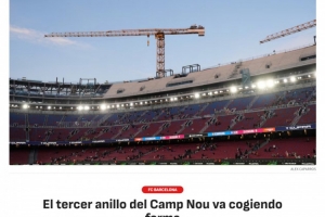《阿斯報(bào)》表示,諾坎普球場(chǎng)的第三層看臺(tái)正在建設(shè)中,側(cè)門和南門區(qū)域的工程進(jìn)展順利,預(yù)制混凝土板正在安裝中。新的看臺(tái)將比之前的看臺(tái)更高更陡,預(yù)計(jì)將于2026-27賽季完工,頂棚將于2027年底至2028年初之間完成,該球場(chǎng)翻新后預(yù)計(jì)可容納約10.5萬名觀眾。
