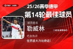 第14輪評(píng)選結(jié)果出爐,斯圖加特球員勒威林獨(dú)造三球,并轟出無(wú)解世界波,助球隊(duì)大勝不萊梅,獲得吧友超1萬(wàn)票支持,當(dāng)選【體育資訊X小紅書(shū)德甲第14輪最佳球員】!