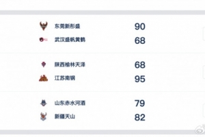 東莞新彤盛 90-68 武漢盛帆黃鶴,廣東女籃四人得分上雙,張明珠18分,陳明伶16分8籃板,楊舒予14分4助攻,科利爾10分6籃板。武漢女籃三人得分上雙,丁奕可18分,佩頓15分10籃板,班克斯11分8籃板。