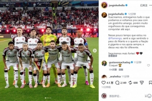弗拉門戈中場若日尼奧社媒曬出首發(fā)球員的合照,配文:“我們奮力拼搏,傾盡全力,雖然帶著些許遺憾踏上歸途,但仍對(duì)迄今取得的成就感到無比自豪。”