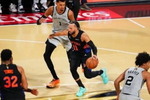 分散的火力其實(shí)適合打尼克斯。之前寫尼克斯的時候提到過,這個隊(duì)中路收的還是比較狠的,護(hù)筐也不錯,還有若干素質(zhì)優(yōu)秀的單防人,頭鐵死磕他們并不容易。反倒是馬刺這種東一榔頭西一棒槌的進(jìn)攻好使。季中賽決賽觀感也是如此,馬刺通過漂亮的轉(zhuǎn)移球創(chuàng)造了不少機(jī)會,如果只看前三節(jié),馬刺打得非常好。