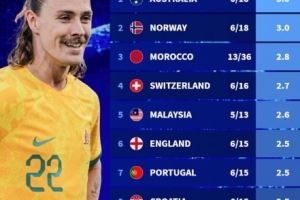 體育資訊10月9日訊 德轉(zhuǎn)統(tǒng)計2025年至今參加5場以上比賽的各國國家隊戰(zhàn)績,澳大利亞、挪威六戰(zhàn)全勝高居第一。