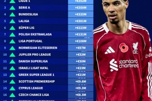 體育資訊12月31日訊 德轉(zhuǎn)統(tǒng)計了2025年歐洲聯(lián)賽整體的身價上漲和跌幅排行榜,英超斷層領(lǐng)先排名榜首。