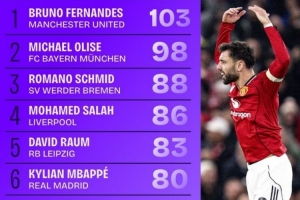 體育資訊12月31日訊 數(shù)據(jù)網(wǎng)站Squawka盤點了2025年五大聯(lián)賽創(chuàng)造機會榜,其中B費居首,具體如下: