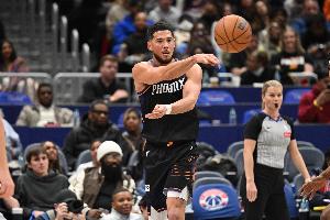 第三節(jié)比賽,上半場(chǎng)狀態(tài)一般的布克終于開始發(fā)力,里突外投連續(xù)取分帶隊(duì)追分,他單節(jié)13中7,三分4中2砍下19分2助攻1搶斷。