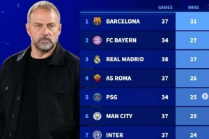 體育資訊1月1日訊 德轉(zhuǎn)盤點了在2025年五大聯(lián)賽中贏球場次榜,其中巴薩37場31勝居首,具體榜單如下:
