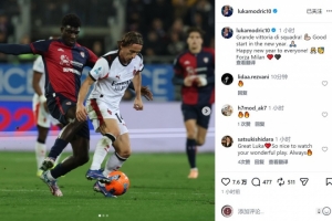 莫德里奇社媒曬出比賽照片,并寫道:“精彩的團隊勝利!為新年開了個好頭。祝大家新年快樂!加油米蘭?!?/p>